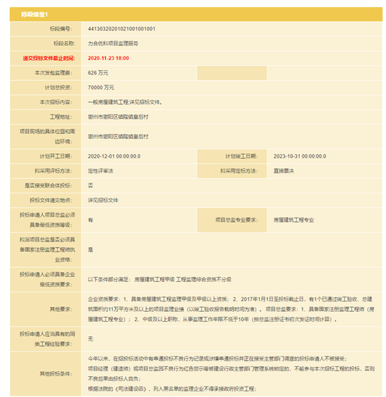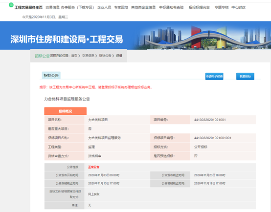 力合优科项目监理服务在深圳市公共资源交易中心发布招标公告